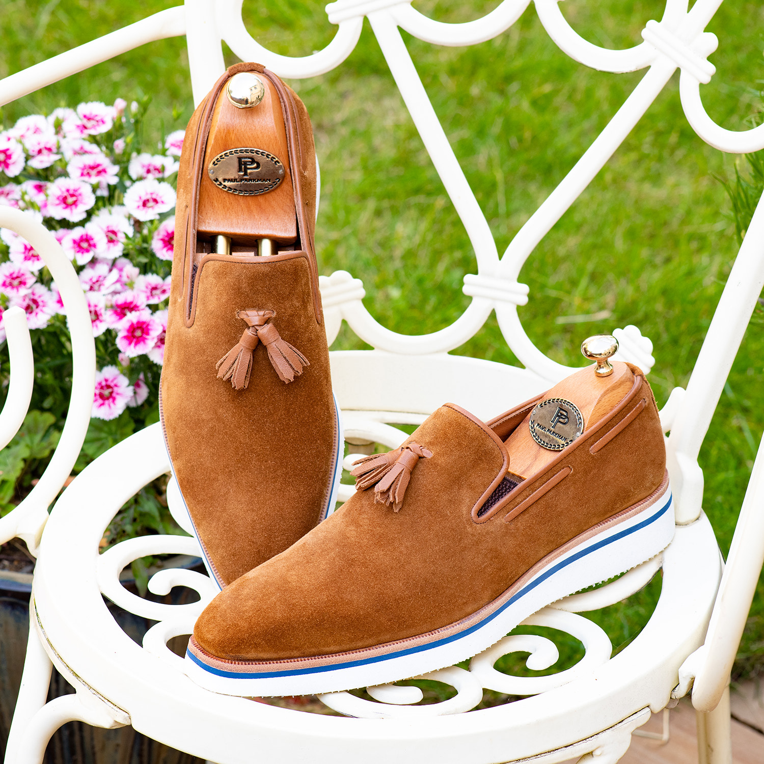 Paul Parkman Men’s Smart Casual Tobacco Suede Tassel Loafer Shoes
