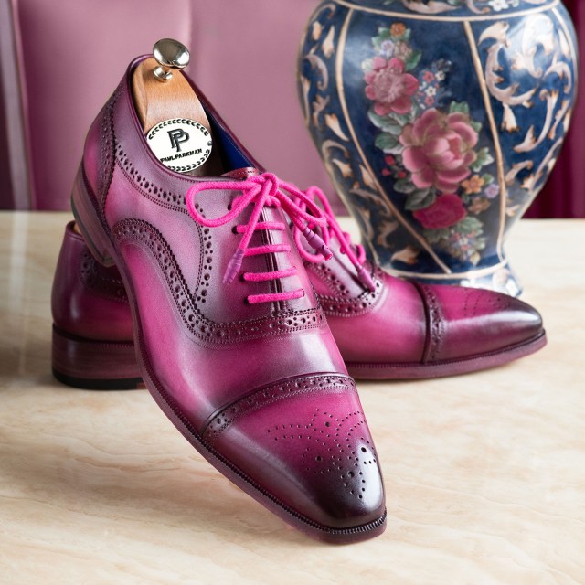 Paul Parkman Men’s Purple Hand-Painted Cap-Toe Oxford Shoes