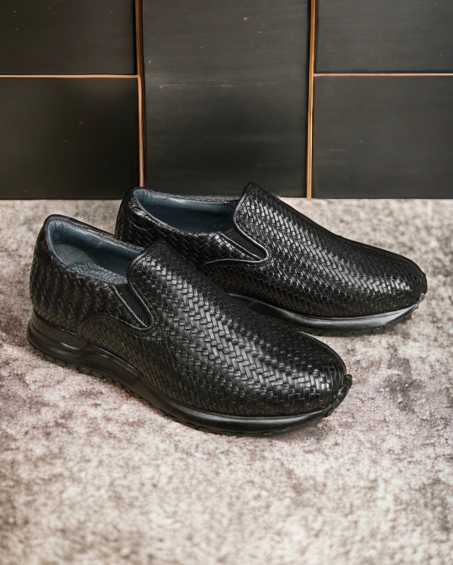 Paul Parkman Men’s Black Woven Leather Slip-On Sneakers