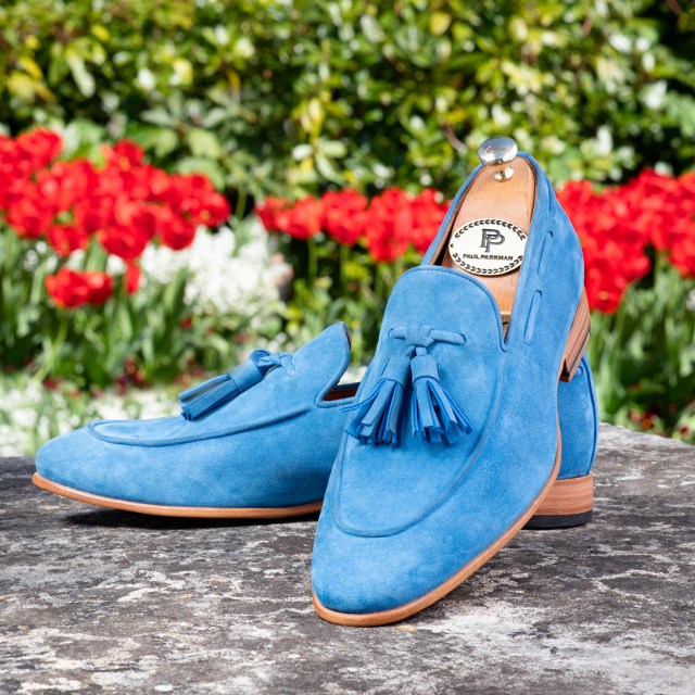 Paul Parkman Men’s Tassel Loafers Blue Suede