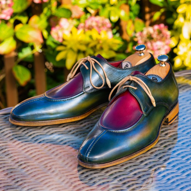 Paul Parkman Split Toe Men’s Green & Bordeaux Derby Shoes