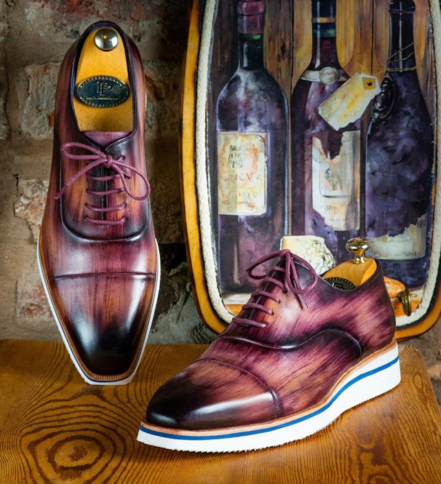 Paul Parkman Men’s Smart Casual Oxfords Purple Leather