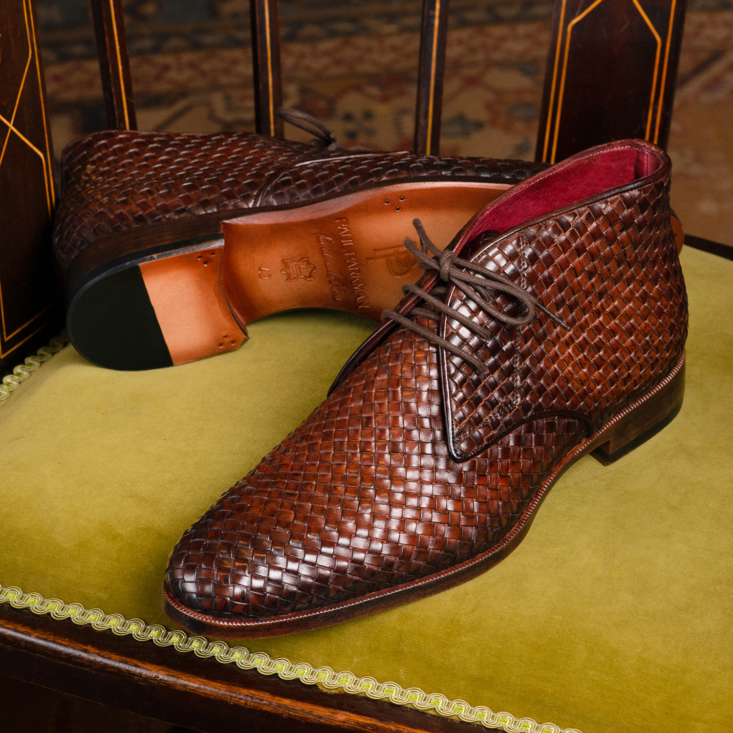Paul Parkman Men’s Brown Woven Leather Chukka Boots