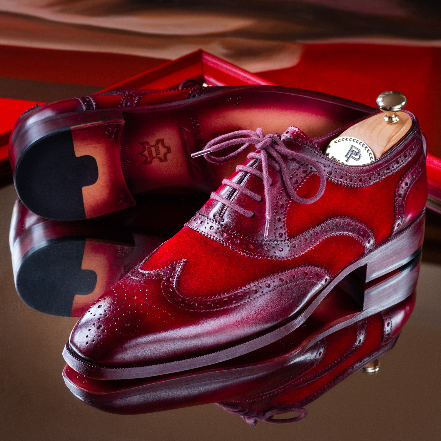 Paul Parkman Men’s Bordeaux Leather and Red Suede Wingtip Oxford Shoes