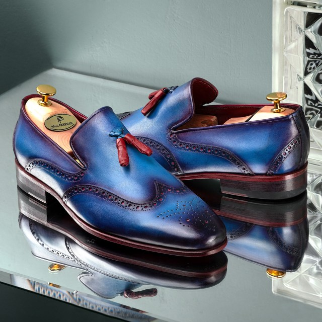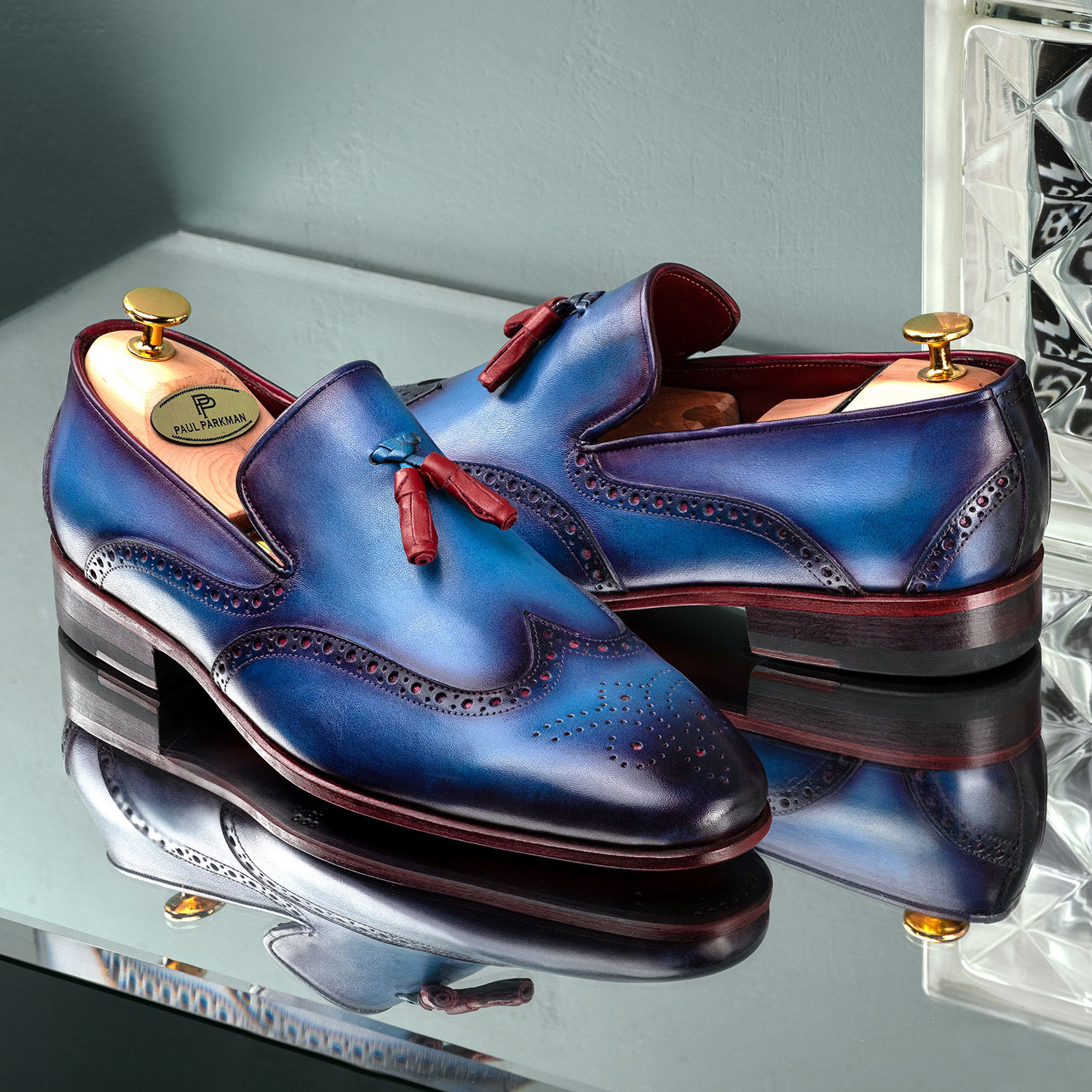Paul Parkman Men’s Wingtip Tassel Loafers Blue Leather
