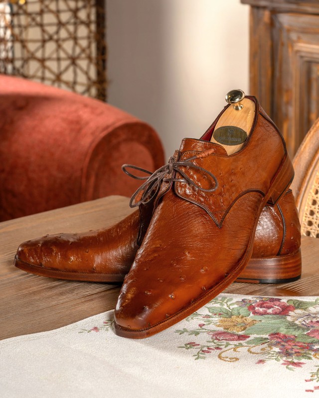 Paul Parkman Men’s Tobacco Genuine Ostrich Derby Shoes