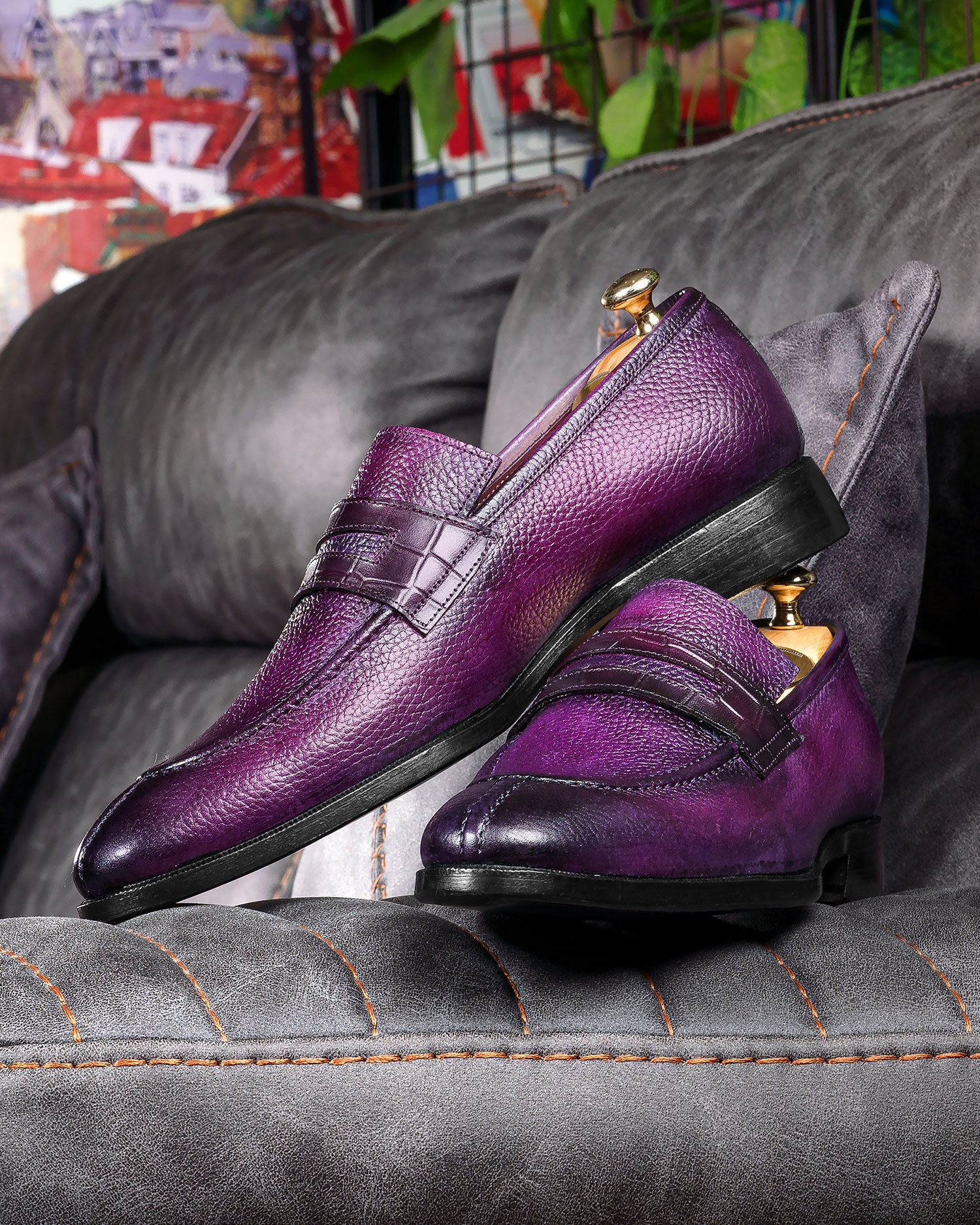 Paul Parkman Men’s Split Toe Loafer Shoes Purple