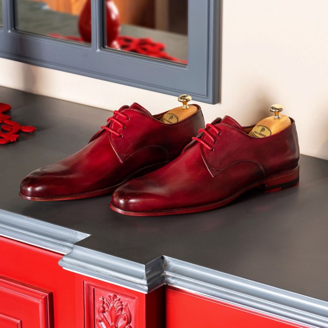 Paul Parkman Burgundy Hand Painted Derby Shoes