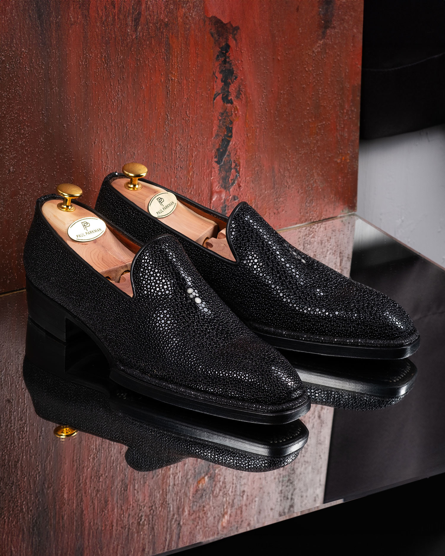 Paul Parkman Men’s Custom-Made Black Stingray Hand Welted Loafers