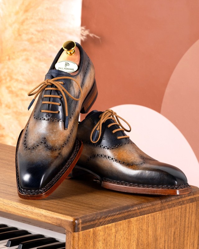 Paul Parkman Goodyear Welted Men’s Wingtip Oxfords Camel & Navy