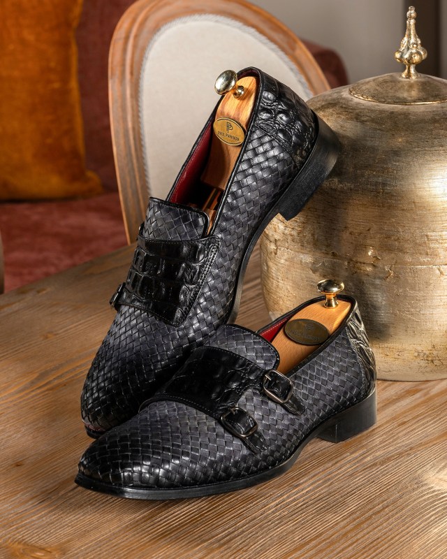 Paul Parkman Gray Woven & Croc Embossed Monkstraps