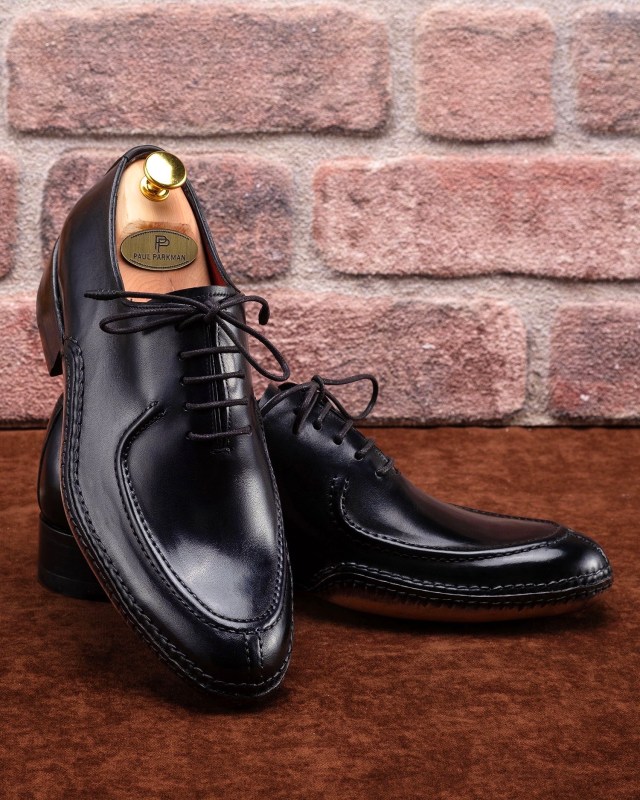 Paul Parkman Opanka Stitched Men’s Split-Toe Black Leather Oxford Shoes