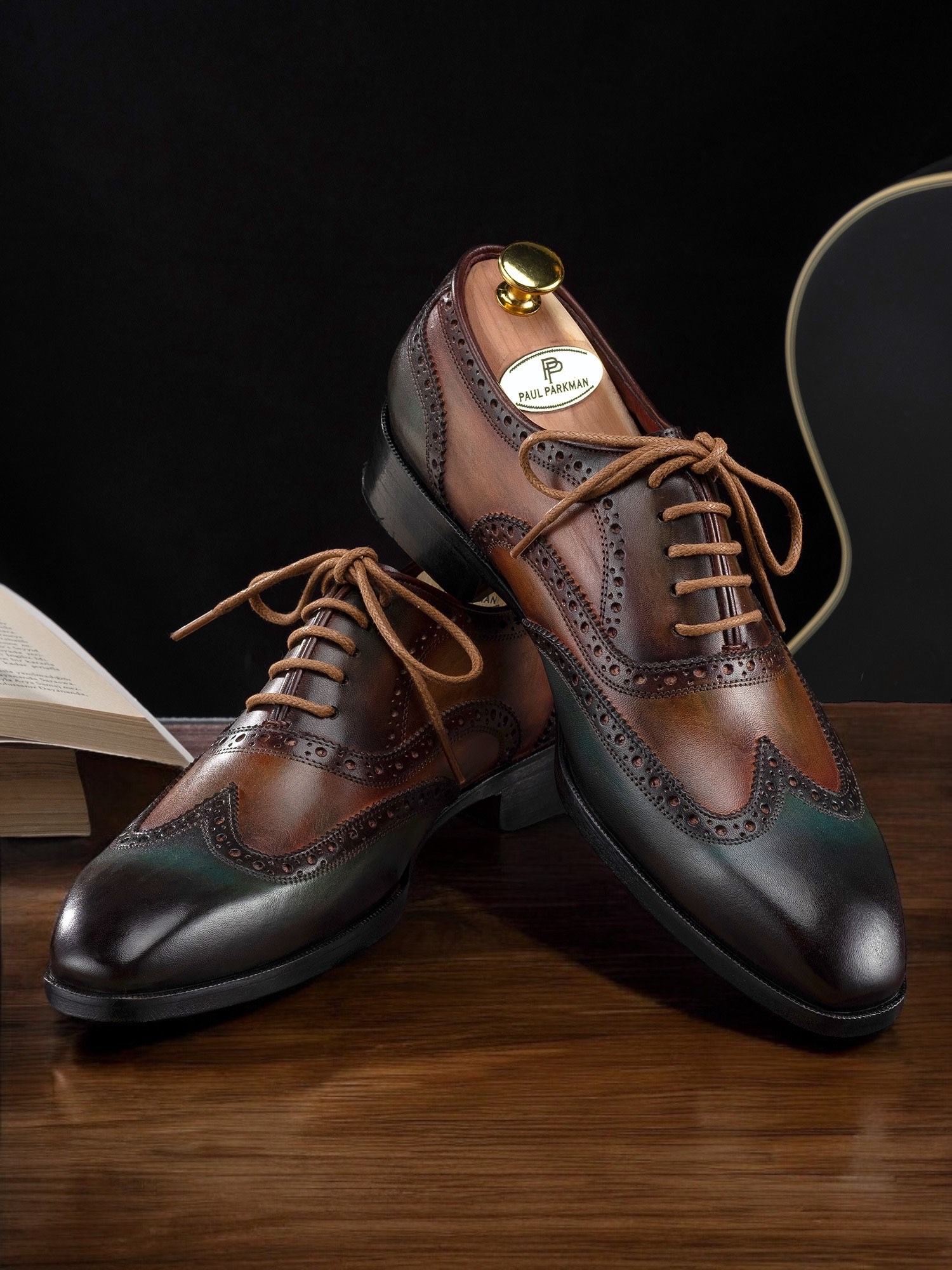 Paul Parkman Wingtip Oxfords Green Hand-Painted Calfskin