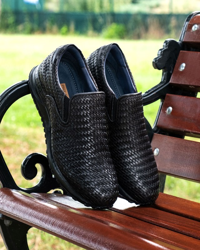 Paul Parkman Men’s Black Woven Leather Slip-On Sneakers