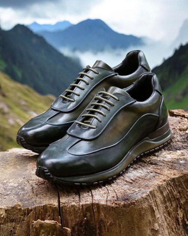 Paul Parkman Men’s Green Patina Leather Sneakers
