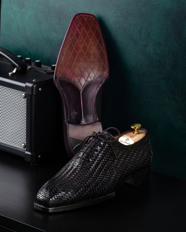 Paul Parkman Black Woven Leather Hand-Welted Oxford Shoes for Men