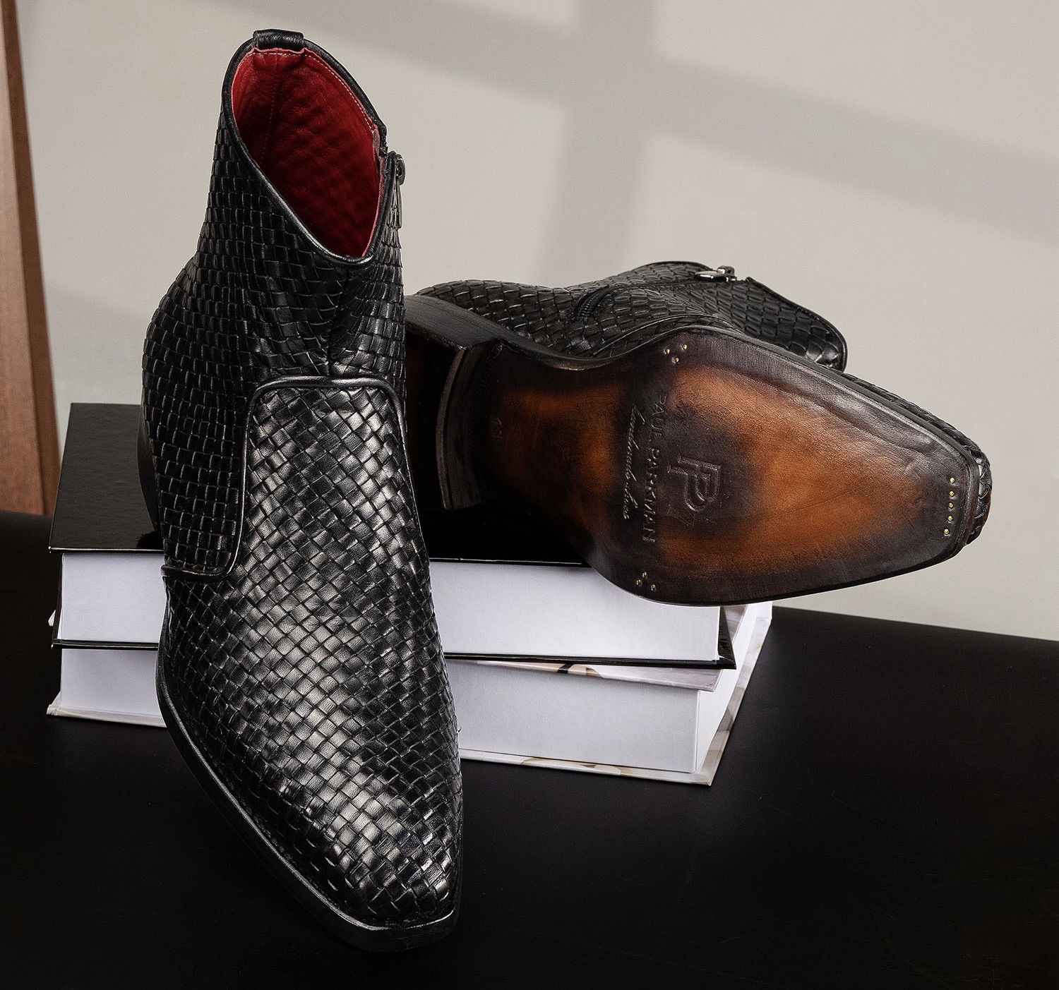 Paul Parkman Black Woven Leather Goodyear Welted Zipper Boots