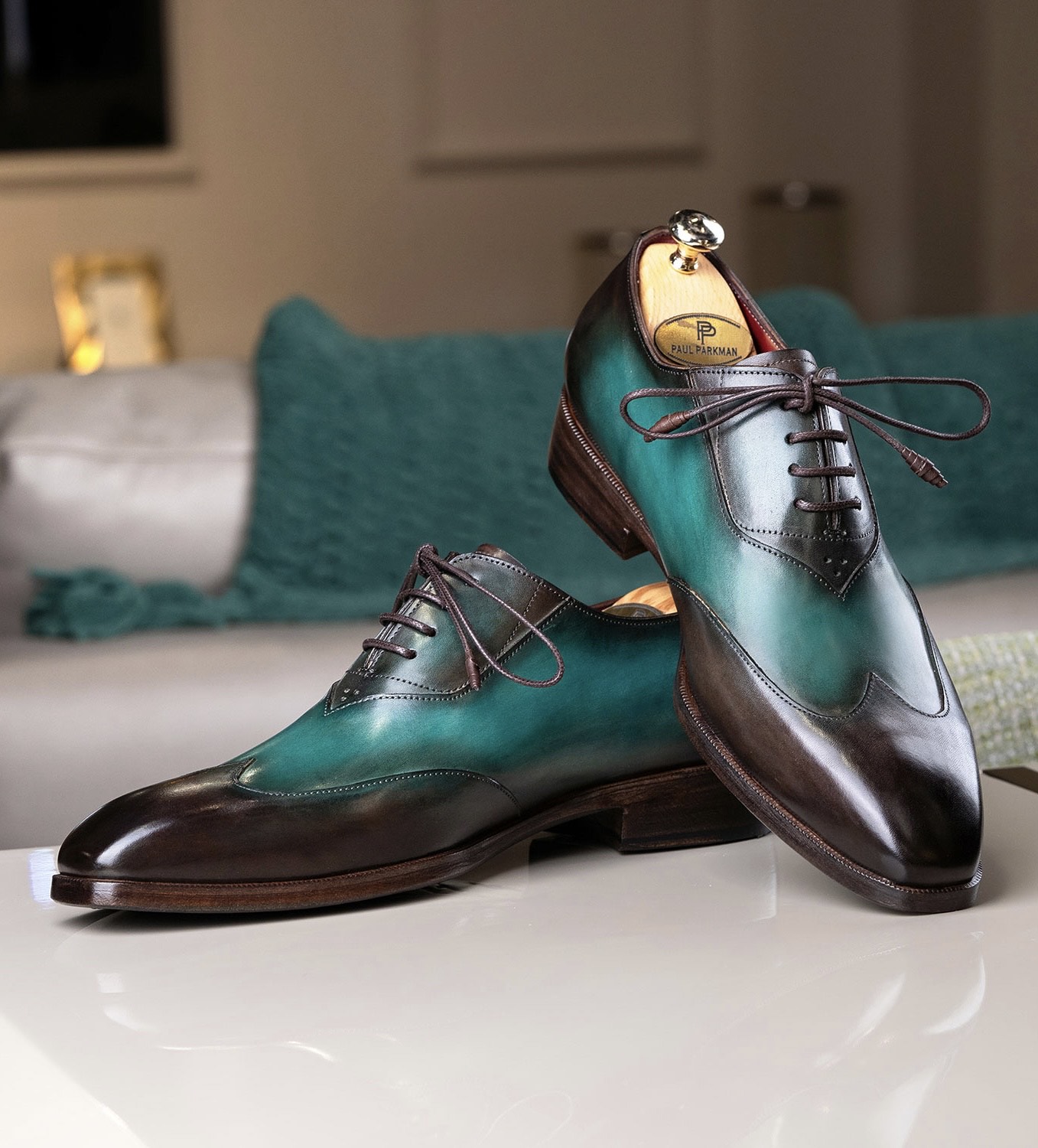 Paul Parkman Brown & Green Patina Leather Wingtip Oxford Shoes
