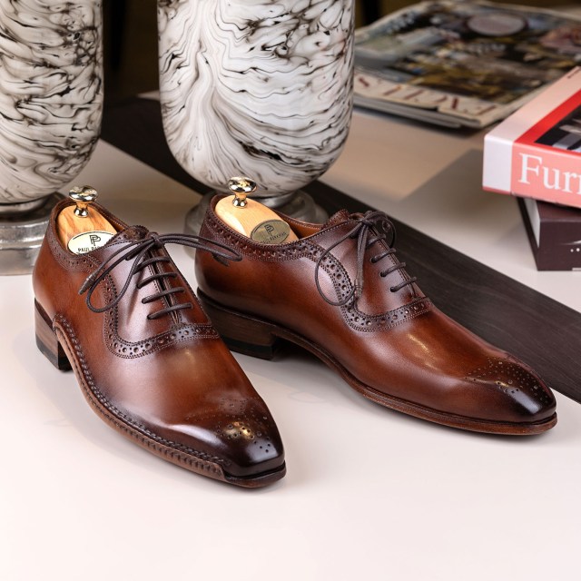 Paul Parkman Men’s Brown Burnished Leather Handmade Oxfords