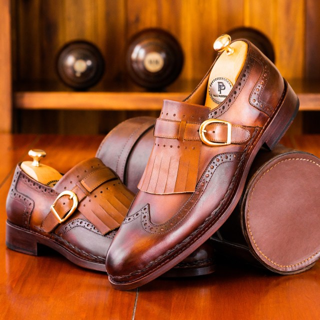 Paul Parkman Men’s Wingtip Kiltie Monkstrap Shoes Brown Leather
