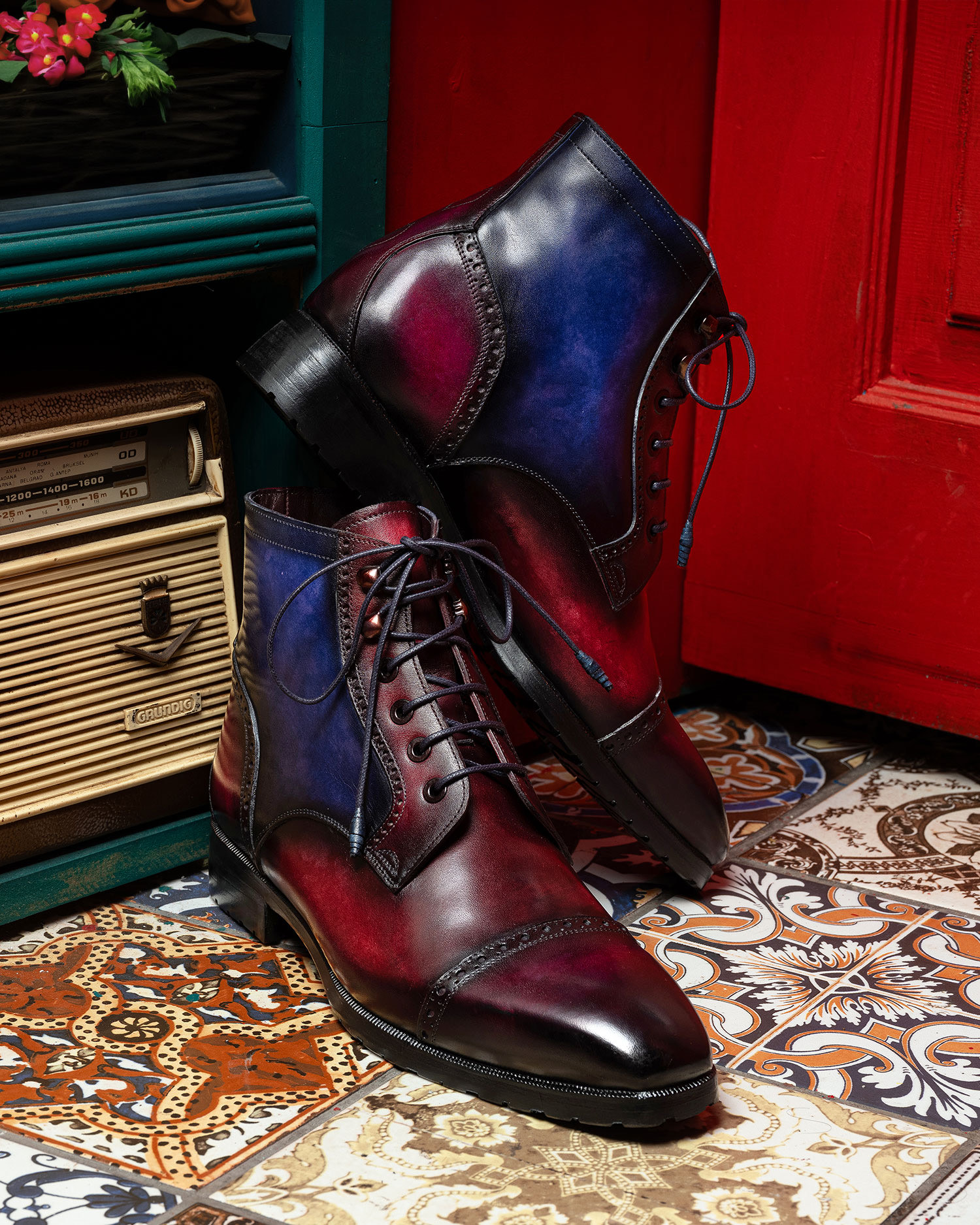Paul Parkman Men’s Multicolor Hand-Painted Cap Toe Boots