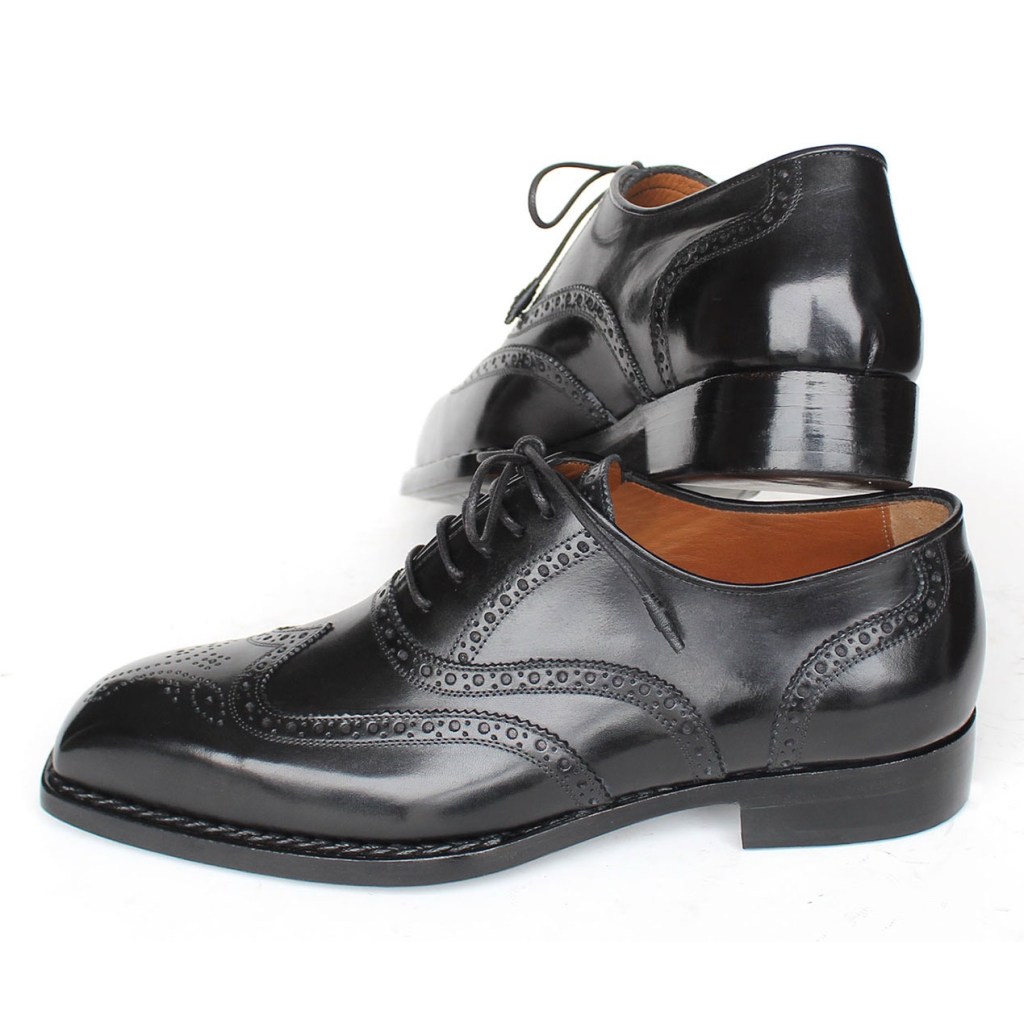 Paul Parkman Men’s Black Leather Goodyear Welted Handmade Wingtip Oxford Shoes