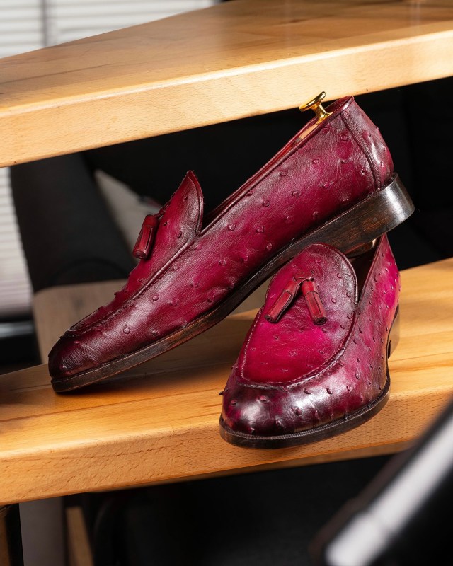 Paul Parkman Men’s Purple Genuine Ostrich Skin Tassel Loafers