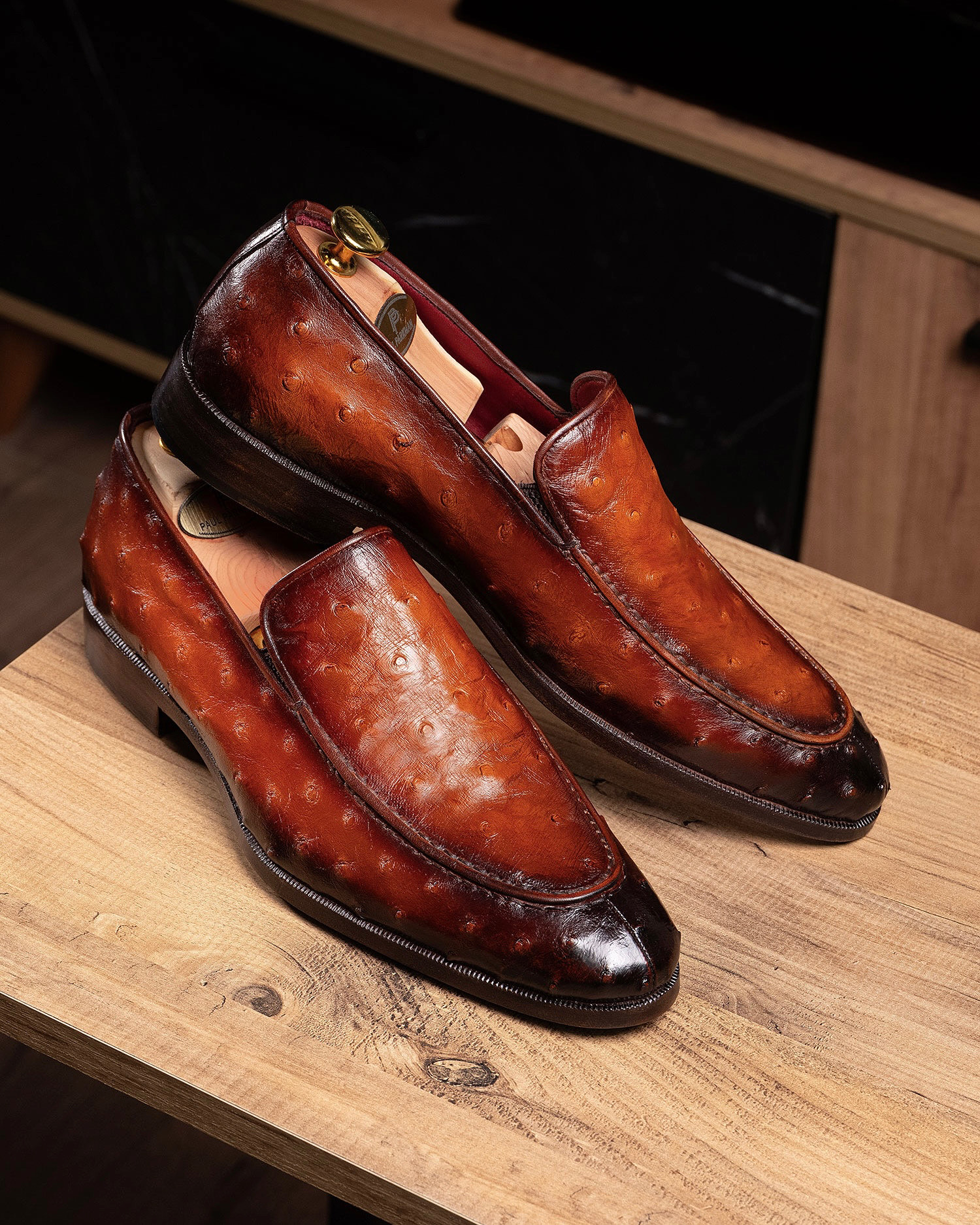 Paul Parkman Genuine Ostrich Skin Loafers Brown