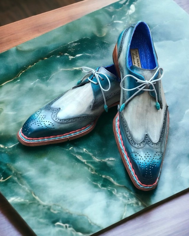 Paul Parkman Norwegian Welted Wingtip Derby Shoes Blue & Grey