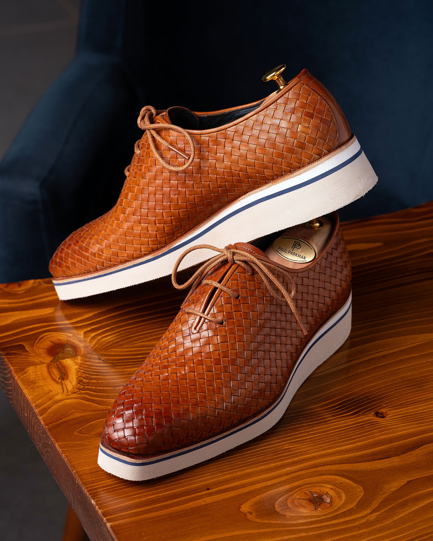 Paul Parkman Men’s Woven Leather Smart Casual Shoes Camel Brown