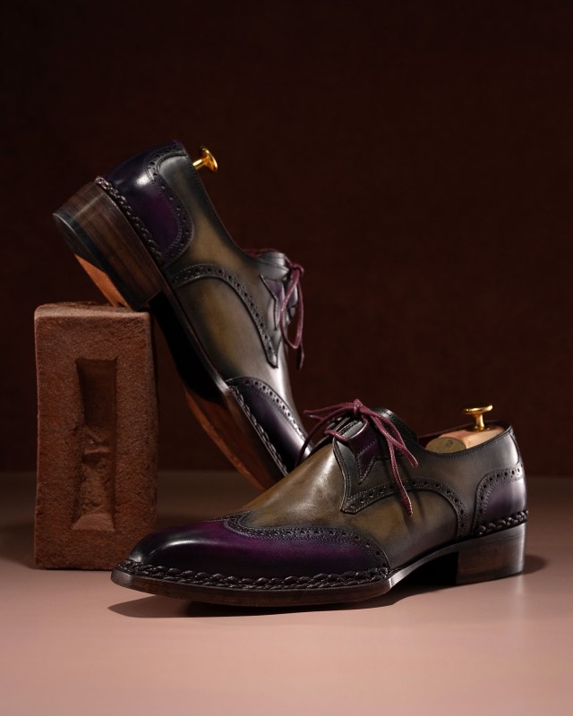 Paul Parkman Norwegian Welted Wingtip Men’s Dress Shoes Purple & Olive
