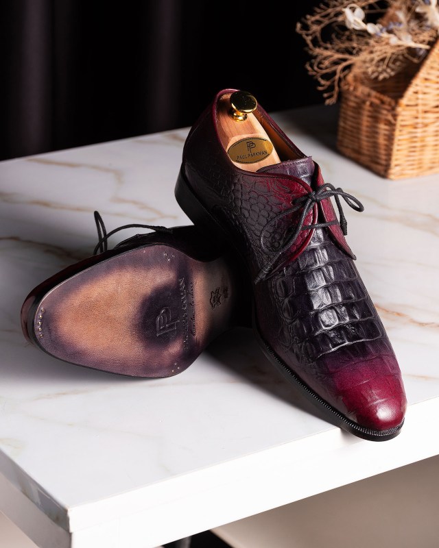 Paul Parkman Men’s Black & Purple Crocodile Textured Leather Derby Shoes