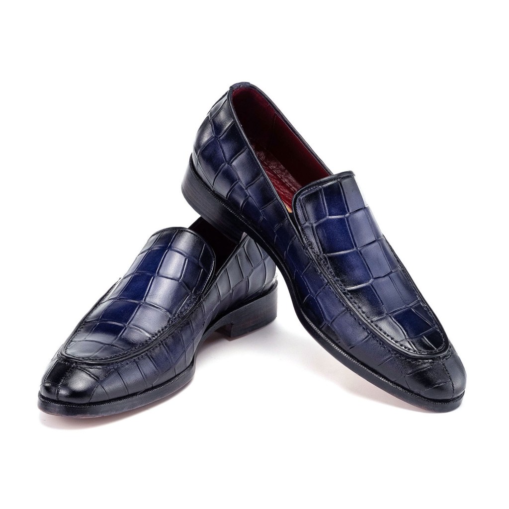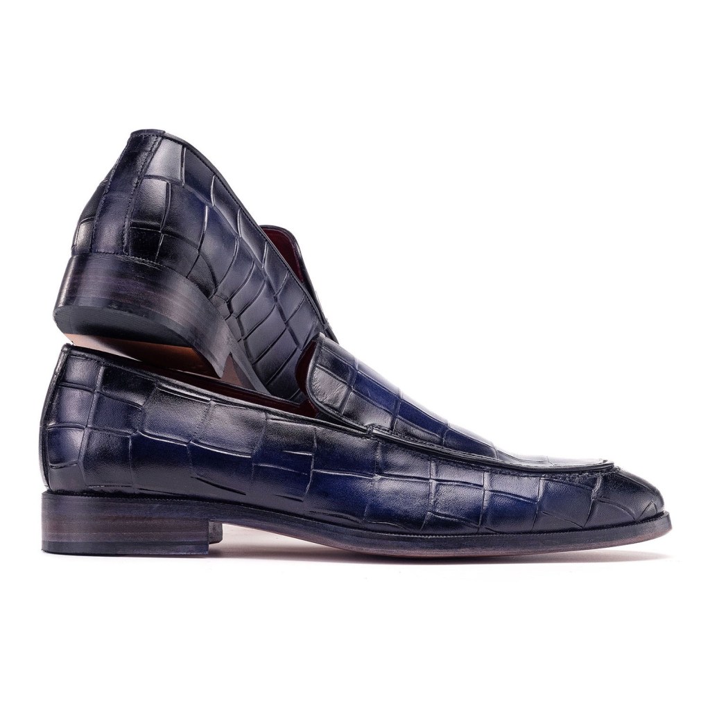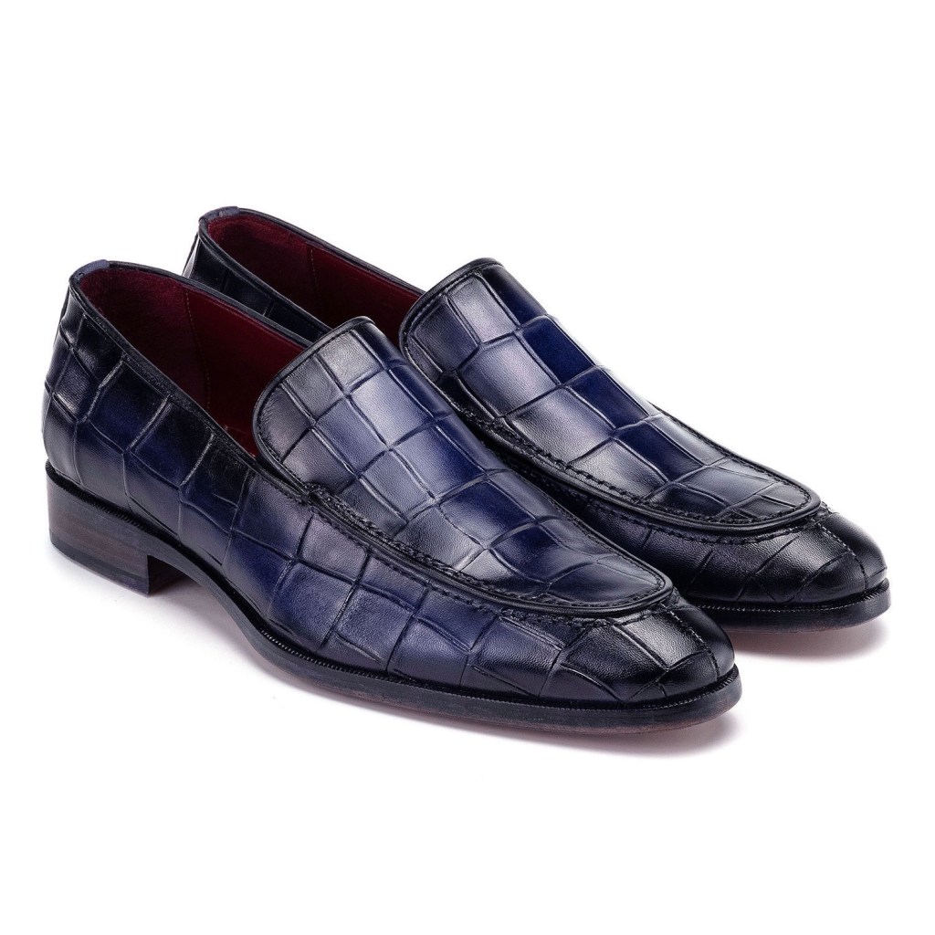 Paul Parkman Croco Textured Leather Loafer Blue